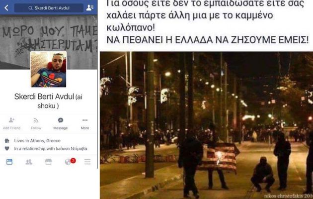 Οργή επικρατεί στο διαδίκτυο για έναν νεαρό Αλβανό που φέρεται να ζει στην Αθήνα, με το όνομα Σκερντί Μπερτί Αβντούλ (Skerdi Berti Avdul), ο οποίος επίσης φέρεται να «πανηγύρισε» με προκλητική ανάρτησή του στο Facebook το κάψιμο της ελληνικής σημαίας από κουκουλοφόρους στα επεισόδια της 17ης Νοεμβρίου στο Πολυτεχνείο.