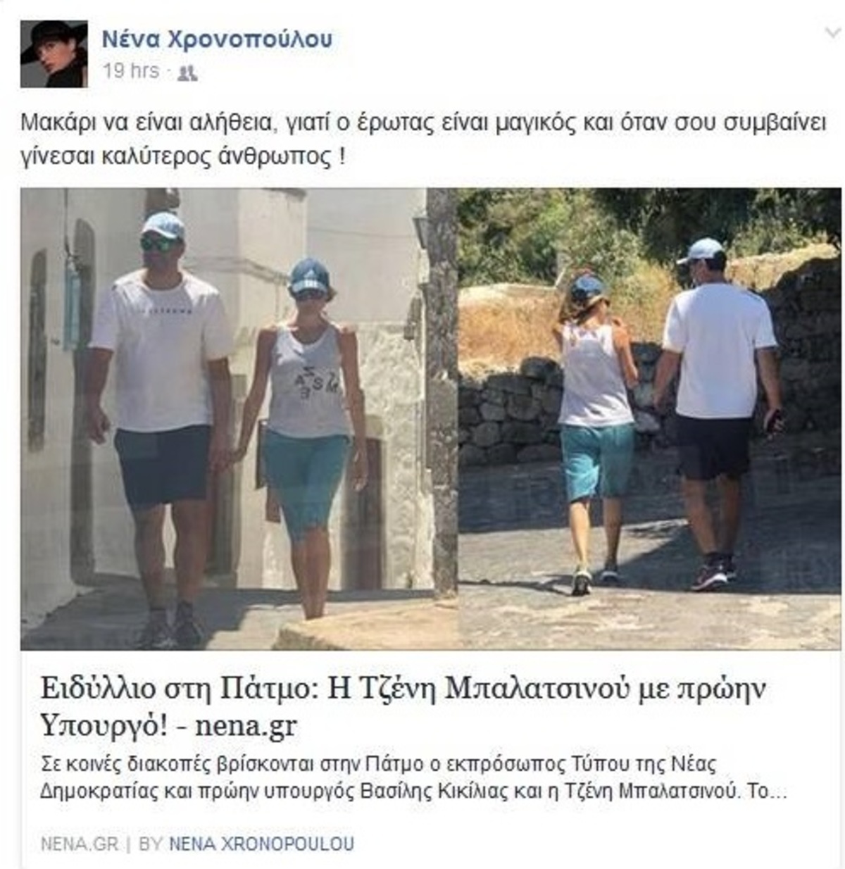 Με αφορμή της φωτογραφίες που κυκλοφόρησαν, η Νένα Χρονοπούλου σχολίασε: «Μακάρι να είναι αλήθεια, γιατί ο έρωτας είναι μαγικός και όταν σου συμβαίνει γίνεσαι καλύτερος άνθρωπος!»