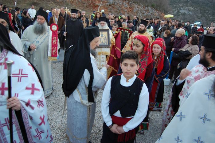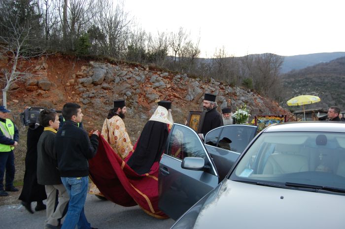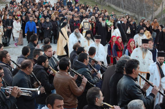 Στό χώρο υποδοχής στην είσοδο της Μονής, ανέμεναν πλήθος Κληρικών ιεροφορεμένων, ο Καθηγούμενος με την Αδελφότητα και μεγάλο πλήθος προσκυνητών, με στελέχη των Πολιτιστικών Συλλόγων Ανατολικορωμυλιωτών Γουμένισσας “Ο Αγιος Τρύφων” καί Πολυκάστρου “Οι Ακρίτες”, και υπό τη δ/νση του Γ. Ζώρα περί τα (40) στελέχη των γνωστών Χάλκινων της Γουμένισσας που παιάνιζαν ύμνους εκκλησιαστικούς μέχρι την είσοδο του Καθολικού. Παραβρέθηκαν ο Βουλευτής Κιλκίς κ. Γ. Γεωργαντάς, ο Δήμαρχος Γουμένισσας κ. Χρ. Γκουντενούδης, ο Αντιδήμαρχος Υγείας & Εργασίας κ. Ιω. Αλίρης, ο Πρόεδρος της ΔΕΥΑ Παιονίας κ. Αθ. Τζούρτζος, οι Πρόεδροι των Δημ. Διαμ/των Γουμένισσας κ. Αθ. Τραχανίδης και Γρίβας κ. Γ. Μπακάλης, ο κ. Γ. Ηλιάδης εκπρόσωπος του Επιμελητηρίου Κιλκίς, ανχης-εκπρόσωπος του νέου Δκτή της 33ης Ταξιαρχίας Πολυκάστρου, ο αστ. Δκτής Γουμένισσας κ. Ψωμιάδης. Παιδιά Εφημερίων μας μετείχαν στους χορούς των ψαλλόντων Αδελφών.