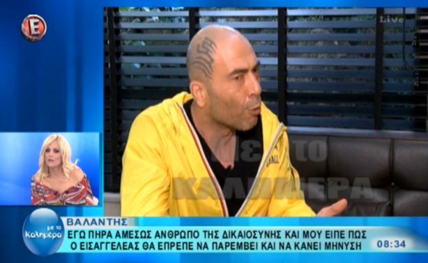 Στο μικρόφωνο της εκπομπής "Με το καλημέρα" και τον Στέφανο Κωνσταντινίδη μίλησε ο Βαλάντης και μεταξύ άλλων αναφέρθηκε και στη δήλωση του Νότη Σφακιανάκη ότι δεν πρέπει να πληρώνουμε φόρους που τον εξόργισε.