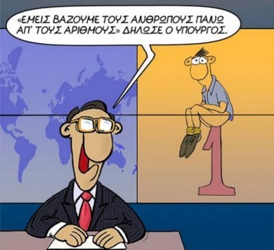 Τα πολιτικού χαρακτήρα σκίτσα από τον Αρκά συνεχίζονται και ως συνήθως είναι εξαιρετικά εύστοχα. Στο τελευταίο "χτύπημα", ο δημοσιογράφος μεταφέρει τις δηλώσεις του υπουργού, λέγοντας: