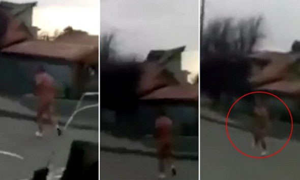 Ο εραστής φαίνεται να τρέχει φορώντας μόνο τις κάλτσες και τα παπούτισα του στην πόλη Bariloche, με τις θερμοκρασίες να αγγίζουν τους μείον 6 βαθμούς κελσίου.