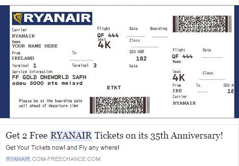 Η εν λόγω ανάρτηση υποσχόταν κλήρωση για δωρεάν εισιτήρια της εταιρείας για την 35η επέτειο από την ίδρυση της. Στην ανακοίνωση της η Ryanair κάνει λόγο για "κακόβουλο λογισμικό" που εξαπατούσε τους χρήστες.