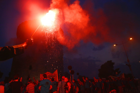Μικροένταση επικράτησε στην πλατεία της ΧΑΝΘ κατά την άφιξη ενός τμήματος των διαδηλωτών. Οι συγκεντρωμένοι σταμάτησαν σε απόσταση αναπνοής από τα ΜΑΤ, φωνάζοντας δυναμικά συνθήματα.
