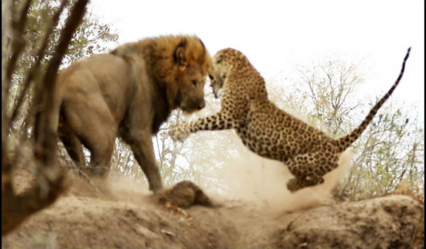 Όπως θα δείτε και εσείς, το λιοντάρι πλησίασε την λεοπάρδαλη που ήταν ξαπλωμένη. Η τελευταία αιφνιδιάστηκε από την παρουσία του «βασιλιά των ζώων» και επιχείρησε να αμυνθεί, ωστόσο, στην συνέχεια το έβαλε στα πόδια. Τη σκηνή κατέγραψε με την κάμερα του ο Matthew Poole.