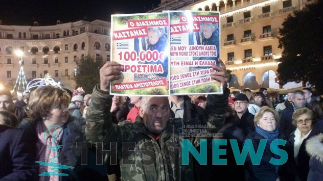 Στο πλακάτ που κρατούσε στα χέρια ο καστανάς έγραφε: "Ο διάσημος καστανάς. 100.000 ευρώ πρόστιμα. Πλατεία Αριστοτέλους. Δεν μου δίνουν άδεια. Δίνουν μόνο στους δικούς τους. Νοιώθω ξένος στη χώρα μου, νοιώθω ξένος στη πόλη μου".