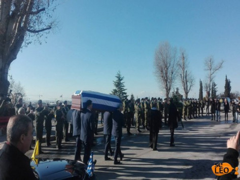 Το φέρετρό του είναι τυλιγμένο με την ελληνική σημαία, ενώ όταν έφτασε στο νεκροταφείο ήταν εκεί για να υποδεχτούν τη σορό του, άγημα του στρατού και στρατιωτική μπάντα.
