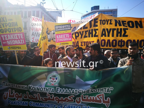 Περισσότεροι από 1.000 "πρόσφυγες", εκπρόσωποι αντιρατσιστικών οργανώσεων, φοιτητικών συλλόγων και μέλη της ΚΕΕΡΦΑ συμμετέχουν στο συλλαλητήριο της Ομόνοιας, με αφορμή την παγκόσμια ημέρα εναντία στο ρατσισμό.