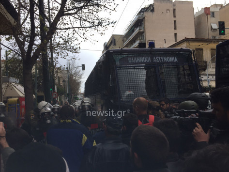 ΜΕ ΚΛΟΥΒΕΣ ΤΩΝ ΜΑΤ ΤΟΥΣ ΠΕΡΙΜΕΝΑΝ ΚΑΙ ΕΞΩ ΑΠΟ ΤΑ ΓΡΑΦΕΙ ΤΟΥ ΣΥΡΙΖΑ...