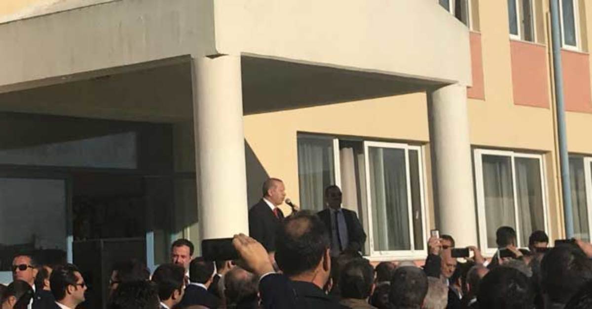 Ο Ερντογάν αντέδρασε και στη συνέχεια κατέβηκε σε αίθουσα του σχολείου όπου ανέφερε σε μια μαθήτρια ότι ζήτησε μικρόφωνο και δεν του το έδωσαν, με αποτέλεσμα - σύμφωνα με αυτόπτες μάρτυρες, η κοπέλα να βάλει τα κλάματα.