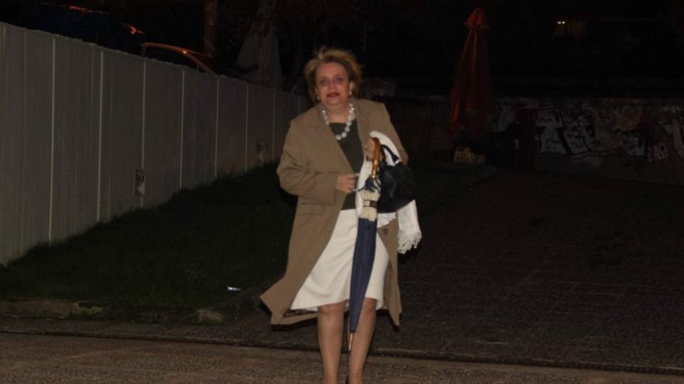 Η κυρία, Ειρήνη Βεντουζά-Παπανικολάου και ο σύζυγός της, Γιώργος Βεντουζάς, κατά την επιστροφή τους στο σπίτι τους στου Παπάγου το βρά...