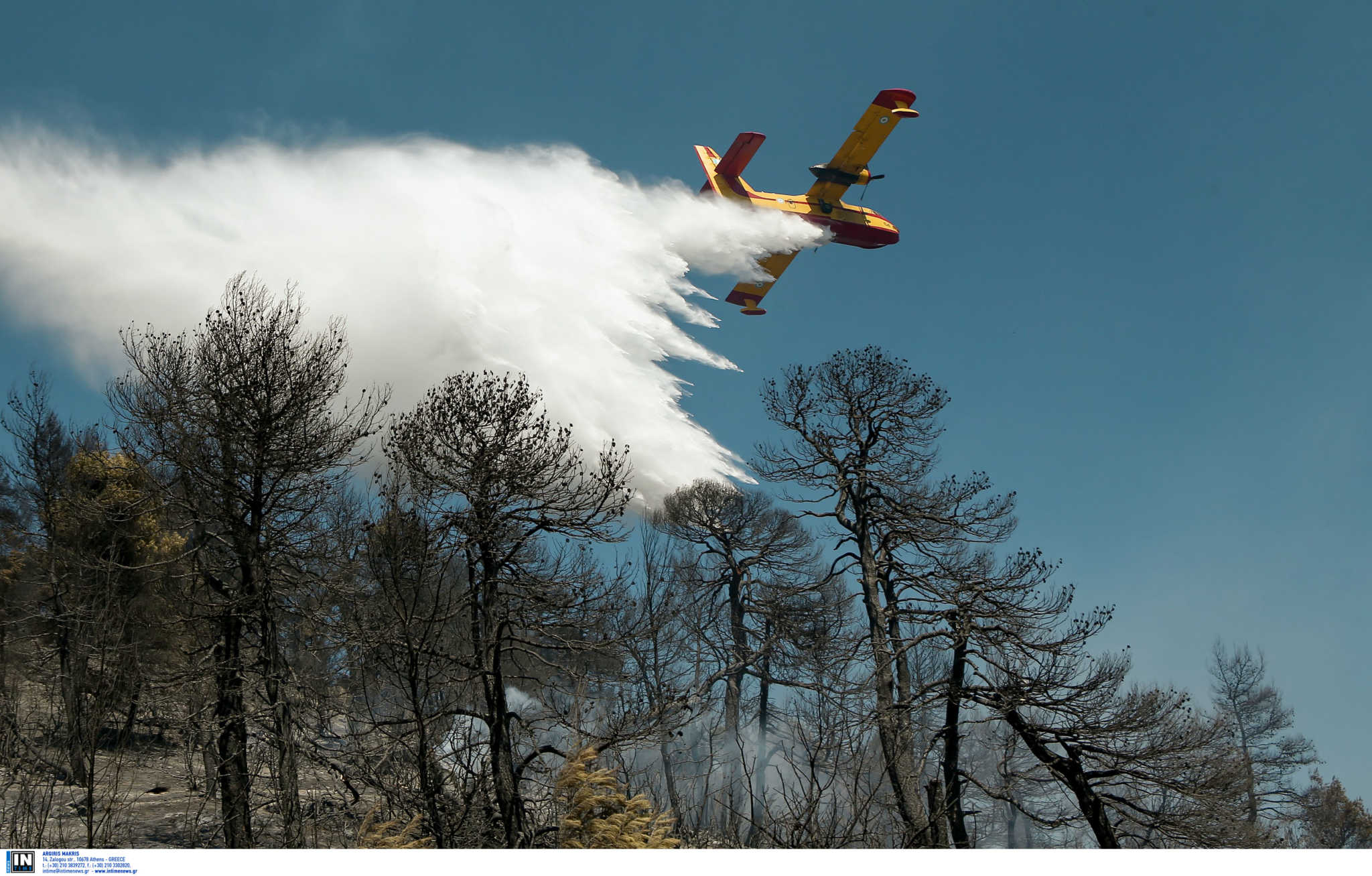 Ρίψεις νερού πραγματοποιεί και πυροσβεστικό ελικόπτερο. Η φωτιά δεν απειλεί κατοικημένη περιοχή.