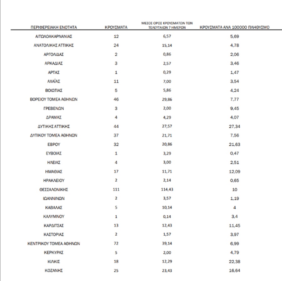 Πρωταθλήτρια για ακόμα μια μέρα, πολλοστή στη σειρά, στην κατανομή των κρουσμάτων είναι η Αττική, η οποία μετράει πάνω από 200 κρούσματα του φονικού ιού.