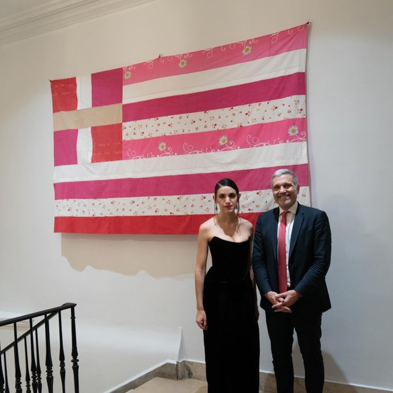 Απομακρύνεται η ελληνικής σημαίας που είναι βαμμένη σε ροζ χρώματα, από την έκθεση της Ελληνίδας εικαστικού Γεωργίας Λαλέ, η οποία φιλ...