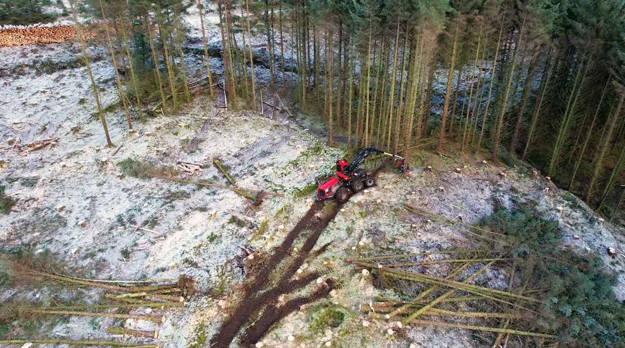 Το μηχάνημα υλοτομίας ελίσσεται ανάμεσα στα ερείπια που ανακάλυψαν οι αρχαιολόγοι (Φωτό: Forestry and Land) Scotland/Youtube).